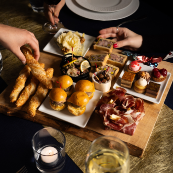 A partager pour 2 à 4 personnes4 sacristains croustillants4 mini burgers au foie gras4 tranches de mini pâté croûteCassolette de poulpe et fruits de mer en saladeOlives taggiascheCoppa et beurre demi-selAssortiment de fromages: Tête de moine, Bleu de Gex et ComtéMignardises et papillotesDisponible mardi 30 et mercredi 31 décembre uniquementQuantités limitées ! Passez vos commandes au plus tôt
