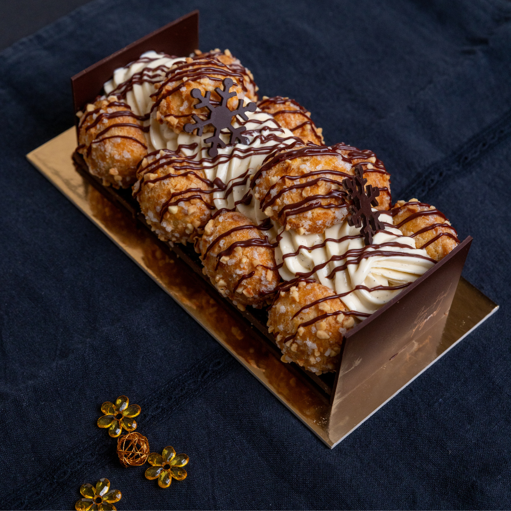 Croustillant chocolat, biscuit chocolat, glace vanille, glace chocolat, choux au sucre