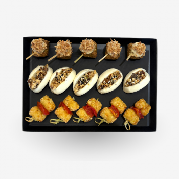 - 5 brioche tandoori (brioche volaille et tandoori, topping oignons frits et sauces)